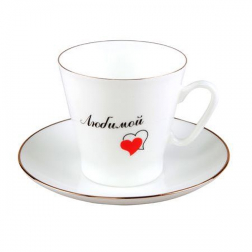 Чашка с блюдцем кофейная, рис. "Сердечки 3 (Любимой)" 80 мл (форма "Черный кофе")