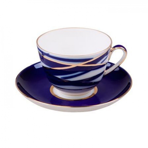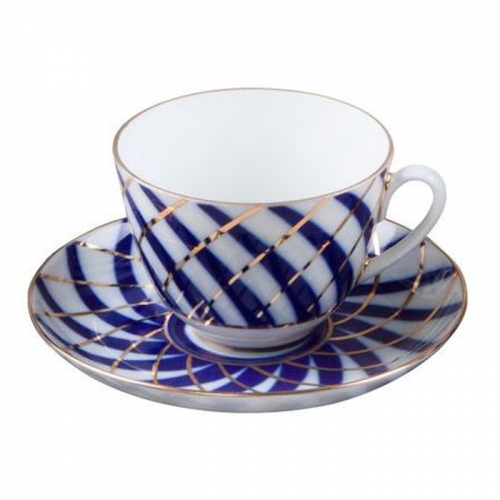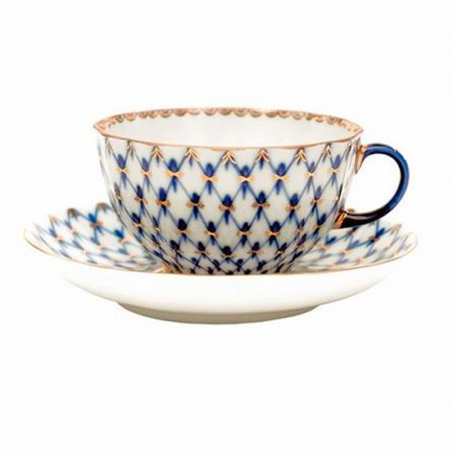 Чашка с блюдцем чайная, рис. "Кобальтовая сетка" 155 мл (форма "Волна")