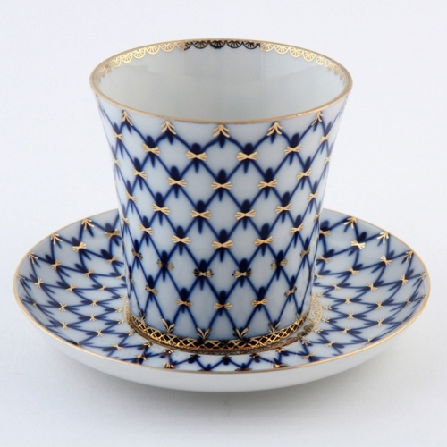 Бокал с блюдце, рис. "Кобальтовая сетка" 360 мл (форма "Ленинградский")