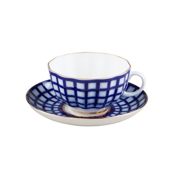 Чайные/кофейные парыЧайная пара,пиала → Чашка с блюдцем чайная, рис. "Кобальтовая клетка" 250 мл (форма "Тюльпан")